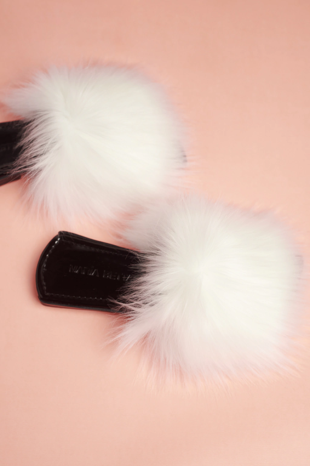 Chinuflas de piel sintética de una tira de pelo largo blanco. Forro de terciopelo.