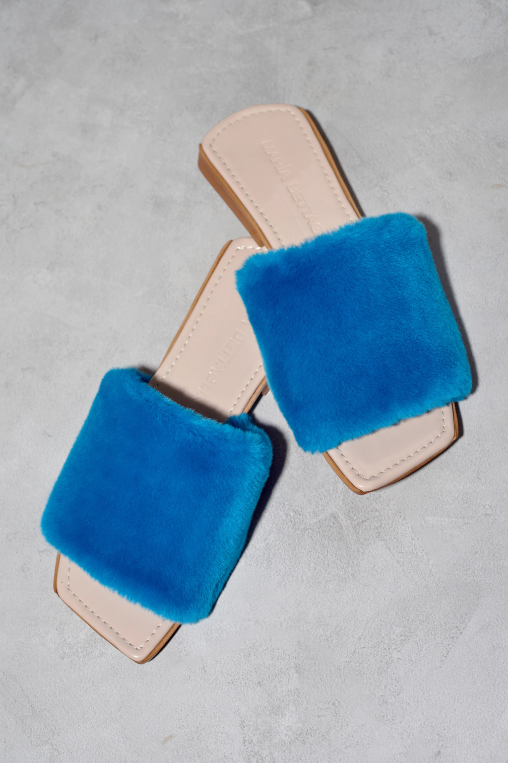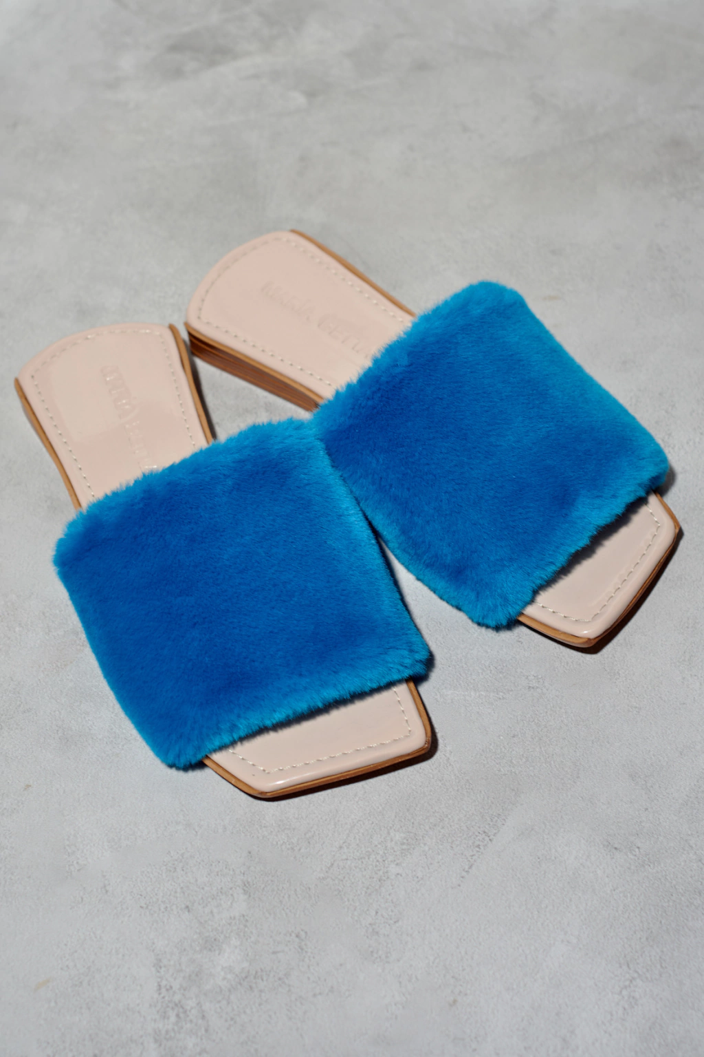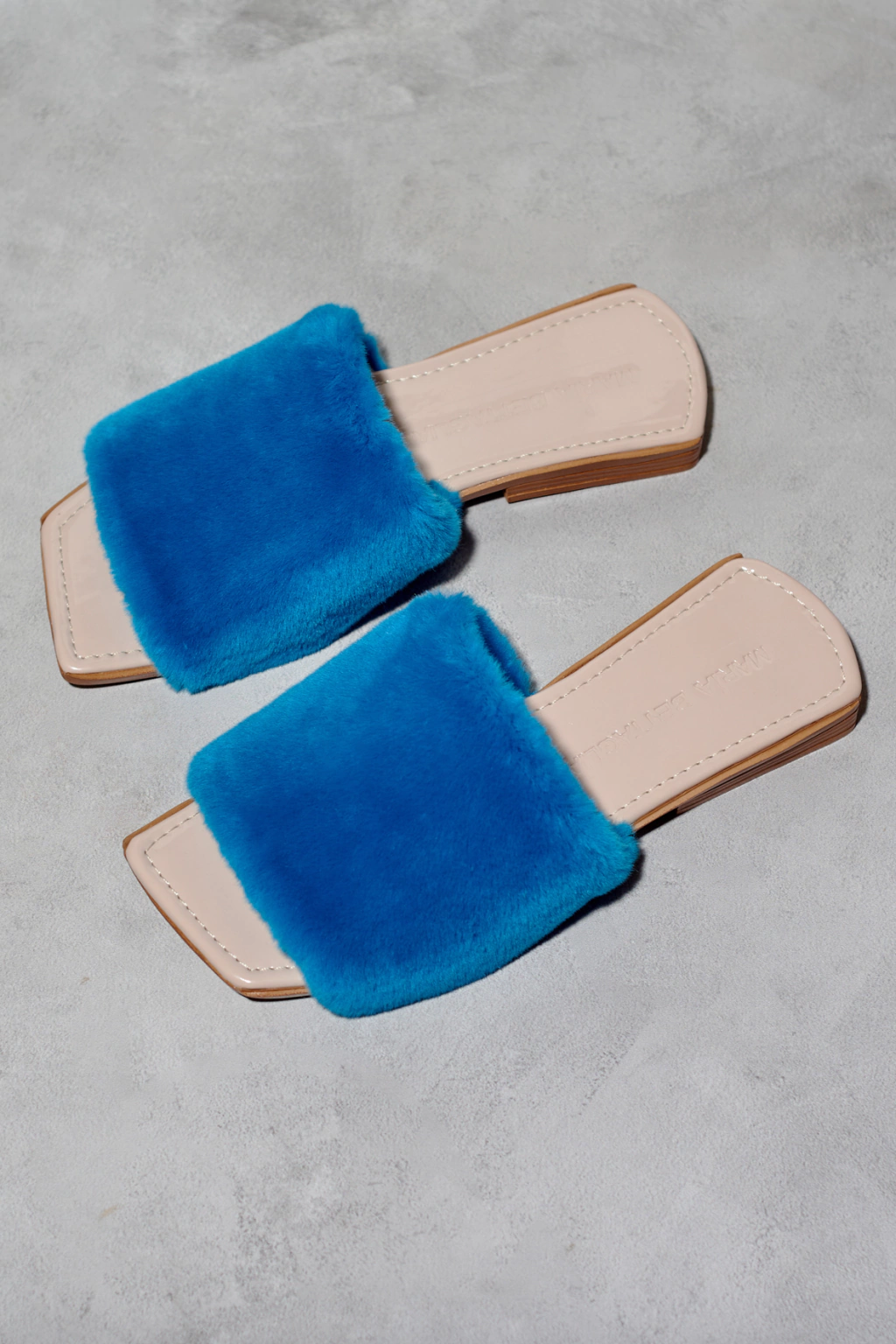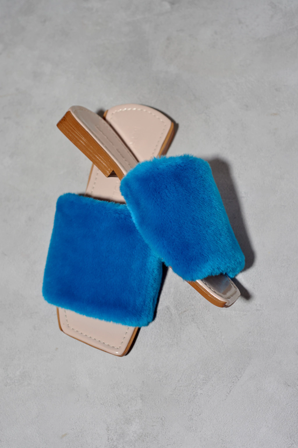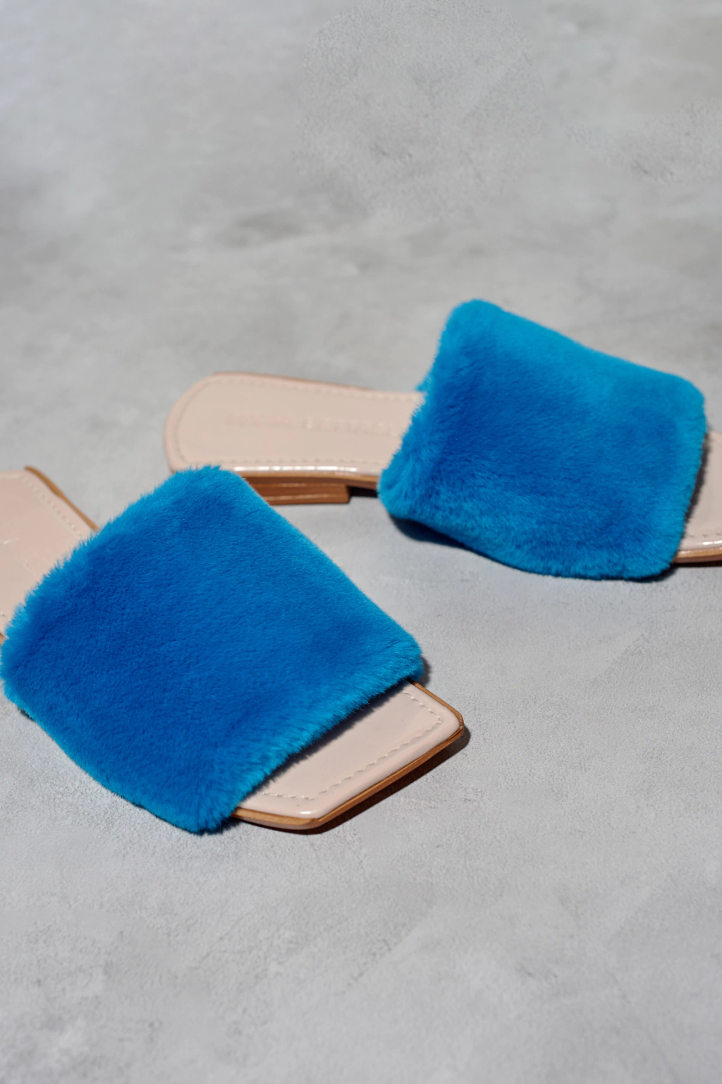 Chinuflas de piel sintética de pelo cortito turquesa. Forro de terciopelo.