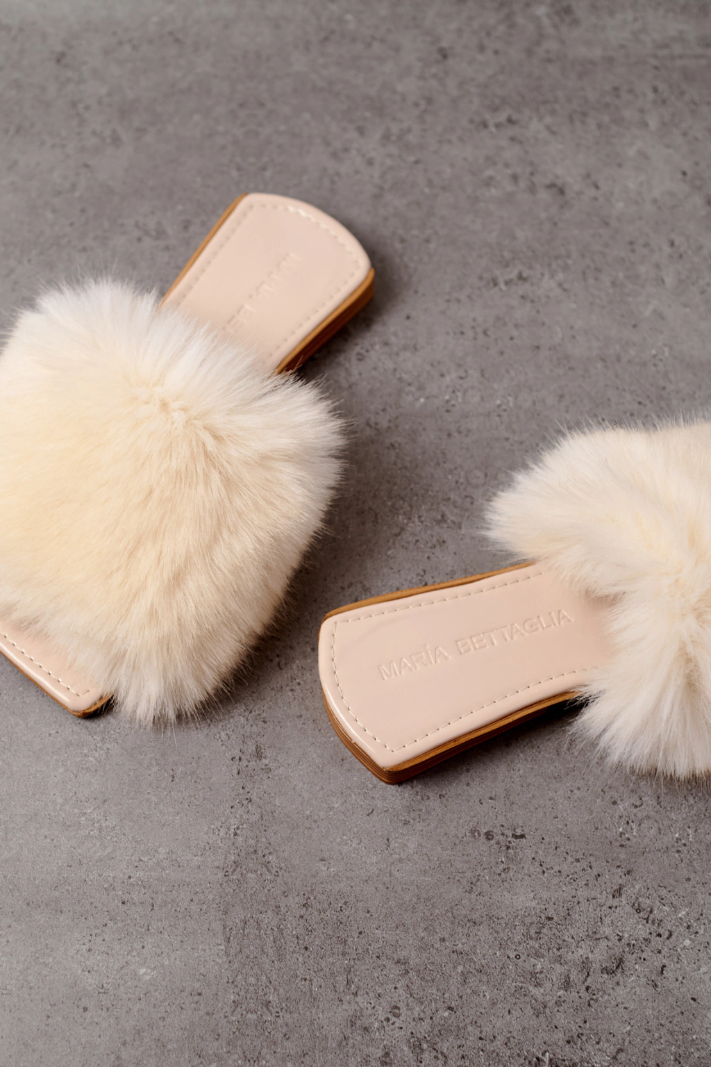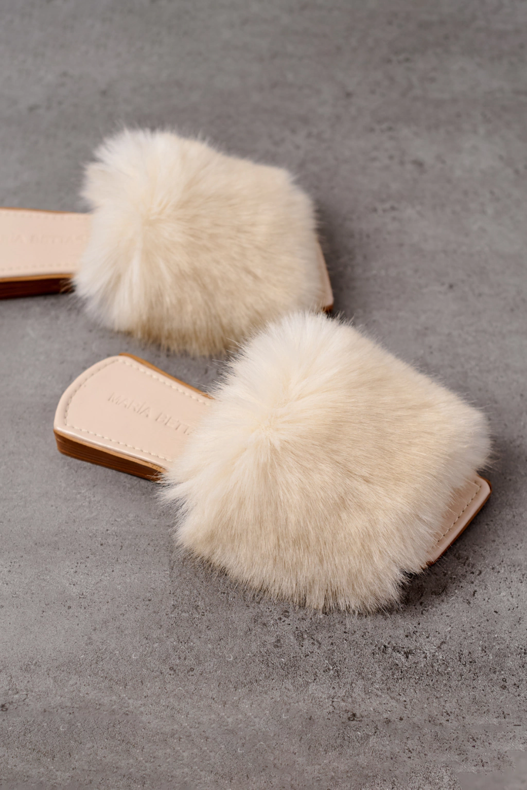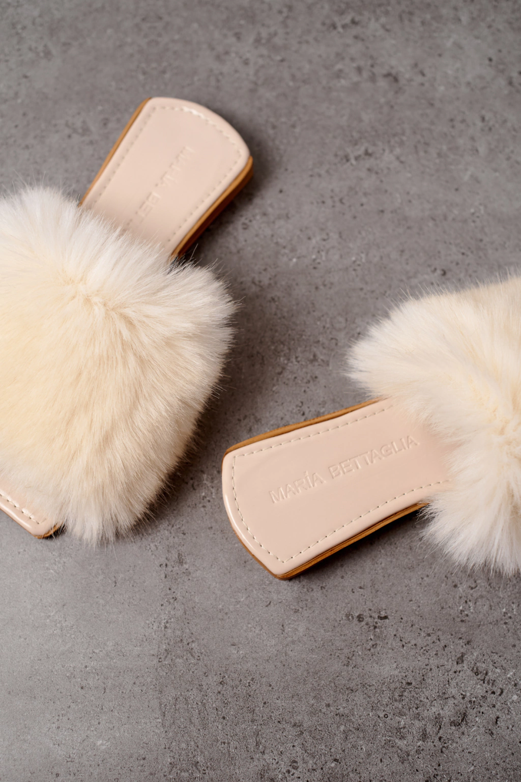 Chinuflas de piel sintética de pelo corto mullido color crema. Forro de terciopelo.