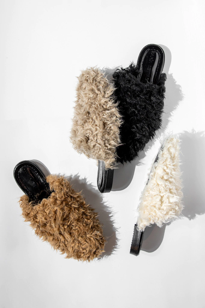 Zuetuflas de piel sintética corta, enruladita y hermosa, color crema.
